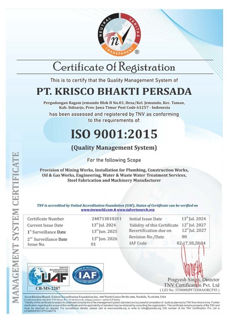 The history of excellence was began in 2002 when CV. KRISCO – as starting company, was established to involve itself in the national economic development, especially in the industrial field for more than twelve years. Since December 2015, we have developed our company to becoming: PT. KRISCO BHAKTI PERSADA, as a new legal entity with all the great experience along our previously company. Today, our company has emerged as one of the leading companies in engineering and construction services of industrial and mining machinery plants, oil and gas, power generations, infrastructures and many more related fields to contribute to the communities and the regions where we live and work, especially devoted to motherland.